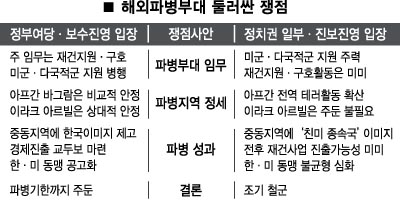 하지만 보다 근본적인 문제는 정부가 막대한 예산과 인력이 투입될 파병연장을 추진하면서 그에 걸맞은 합당한 근거를 제시하지 못했다는 점이다. 정부는 ▲세계평화와 안정 기여 ▲한·미 동맹관계 개선 ▲파병효과 제고 등을 내세웠지만 파병에 반대하는 논리를 압도하기엔 역부족이었다.