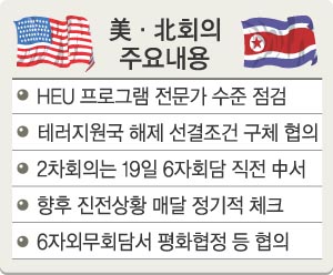 힐 차관보는 기자회견에서 2·13합의 다음 단계인 북한의 모든 핵 프로그램 신고 이전에 고농축우라늄(HEU) 핵프로그램 문제를 다룰 필요성이 있다는 데 양측이 의견을 모았으며, 미국측 전문가들이 북한측 관계자들을 만나 기술적 점검을 할 수 있는 방안을 논의키로 했다고 설명했다.