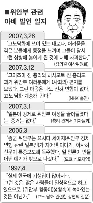 실제 발언 파장은 예전과 같지 않았다. 역풍이 거셌다. 피해 당사국을 비롯해 미국·호주·네덜란드 등도 나서 아베 총리, 즉 일본의 위안부 인식을 신랄하게 비난했다. 미국의 비판이 어느 때보다 강했다.