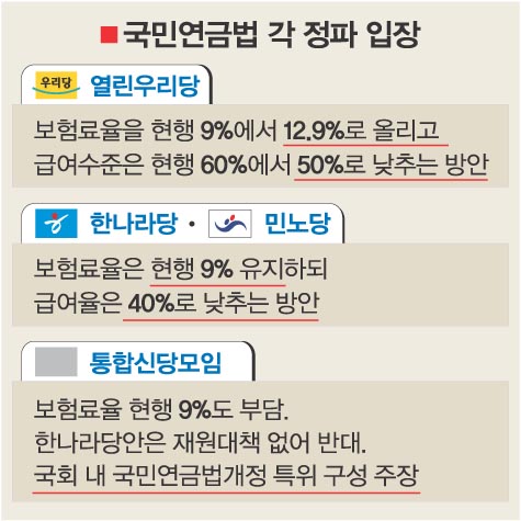 일단 한나라당과 열린우리당은 4월 임시국회 회기 처리를 목표로 이번 주 내에 국민연금법 개정안을 다시 제출하기로 했다. 하지만 양당 모두 지난 본회의에 상정됐던 내용을 유지한다는 입장이다.