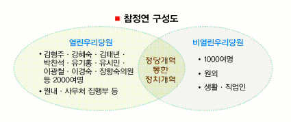 열린우리당내 대표적 친노 그룹인 참정연(참여정치실천연대)이 스스로 해체의 수순을 밟는 것도 주목할 만하다. 정치권에서는 참정연이 몸놀림을 유연하게 가져가 노 대통령의 선택권을 넓혀 주려는 제스처라는 해석이 나온다.‘강성 친노 세력’ 내지는 ‘유시민 옹립세력’이라는 이미지로는 대통령의 행동반경을 좁힐 우려가 있다는 것이다.