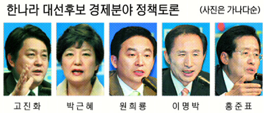 이날 토론회에서는 박 후보의 열차페리와 ‘줄푸세’ 공약, 이 후보의 7% 성장률 공약 등도 집중 해부됐다.