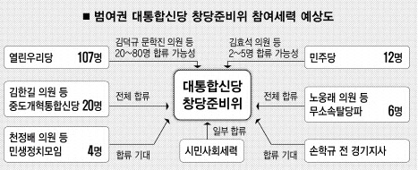 이들은 다음달 15일 발족하는 창준위에 이미 열린우리당을 탈당한 김한길·천정배 의원 등이 이끄는 세력과 김효석·이낙연 의원 등 민주당 의원들, 시민사회세력 등을 두루 참여시킨다는 구상 아래 전방위적인 접촉에 들어갔다. 허허벌판을 두려워 하는 의원들을 위해 ‘당적 유지’를 허용하는 유인책도 마련했다. 이들은 또 손학규 전 경기지사의 참여도 기대하고 있다.