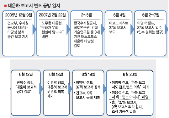 이 후보측은 “정부가 정치적 의도를 갖고 한반도 대운하를 폄훼하기 위해 허위 보고서를 만들었다.”고 주장해왔다.