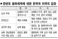 |워싱턴 이도운특파원|미국도 남북한 간에 한반도 평화체제에 대한 본격적인 논의가 필요한 시점이 됐다는 사실을 인정하고 있다. 한국전쟁이 끝난 뒤 이미 55년이 넘었고, 최근 들어 북한 핵문제도 해결 국면으로 접어들었기 때문이다.●남북한 실무그룹 구성 관측