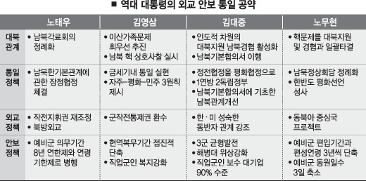 역대 대선에서 외교·안보·통일정책은 어느 정도 파괴력을 발휘했을까. 외교정책을 둘러싼 주요쟁점이 대선의 핵심 어젠다로 부상한 적은 없었고, 통일정책 가운데 북핵문제와 대북지원은 2002년 16대 대선에서 쟁점으로 부상했다.