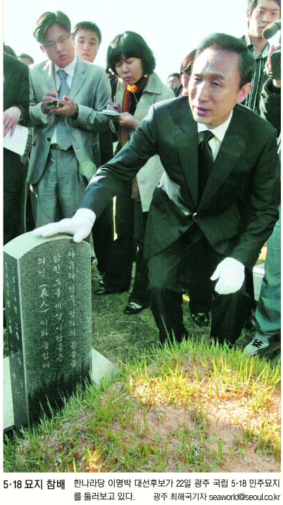 한나라당 이명박 대선후보는 22일 “상대 후보에게 설사 잘못된 일이 있더라도 올 대선에서는 국민이 심판하도록 하고 저는 문제삼지 않겠다.”고 말했다.