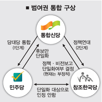 대통합민주신당은 ‘원샷 통합’을 고집하지 않고 ‘2단계 단일화’도 가능하다는 유연한 입장을 밝혔지만 다른 당의 반응은 신통치 않다.