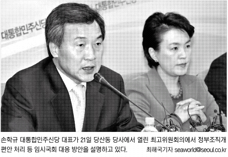 그러나 손 대표가 새로운 체제를 안착시키는 과정에서 당내 최대 계파인 정동영 대선 후보측과 마찰을 빚고 있어 주목된다.