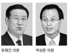 대통합민주신당을 탈당한 유재건·박상돈 의원이 31일 이회창 한나라당 전 총재가 이끄는 자유선진당에 전격 합류했다. 두 의원은 이날 남대문 단암빌딩 21층 사무실에서 이 전 총재와 만나 입당원서를 제출했다.