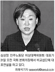 민주노동당 심상정 비상대책위원회 대표는 31일 “편향적 친북당이라는 이미지와 단절하고 책임과 능력을 갖춘 평화정당으로 거듭나겠다.”고 밝혔다.