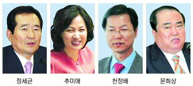 오는 7월 통합민주당 대표 경선을 앞두고 출마가 거론되고 있는 유력 후보들이 색다른 행보를 보이고 있다.일단 정세균 의원의 움직임이 가장 활발하다. 추미애 당선자와 천정배·문희상 의원 등이 아직 출마를 공식화하지 않고 장고(長考)를 거듭하고 있는 가운데 외연 확대에 적극적으로 나서고 있다.