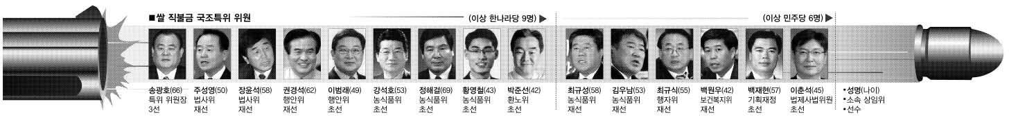 민주당은 이미 쌀 직불금 문제를 제기해 온 저격수와 노련한 재선 의원들을 위주로 특위 위원을 구성했다.