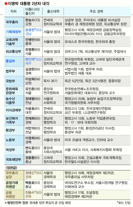 이번 인사에서는 이 대통령의 측근들이 전진 배치돼 ‘코드인사’라는 비판도 예상된다.