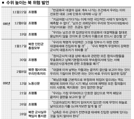 현 상황에서는 서해에서 국지적인 무력 충돌을 피해가기 어렵고, 북한은 인공위성이라고 주장하는 장거리 미사일 시험발사도 임박한 것으로 풀이했다. “북한이 이명박 정부의 대북정책에 반발하고 긴장을 계속 고조시키는 마당에 물러서지 않을 것”이라는 구본학 한림 국제대학원대 교수 등의 지적도 이같은 분위기와 맥을 같이한다.