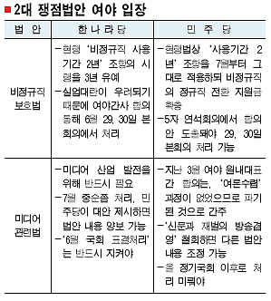 여야가 ‘3차 입법 대치’를 앞두고 최대 쟁점인 비정규직보호법과 방송법·신문법 등 미디어 관련법을 분리 처리하는 쪽으로 가닥을 잡았다.