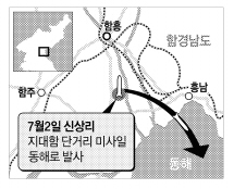 북한이 미사일을 발사한 것은 지난 5월29일 함북 화대군 무수단리에서 신형 지대공 미사일 1발을 쏜 이후 35일 만이다.