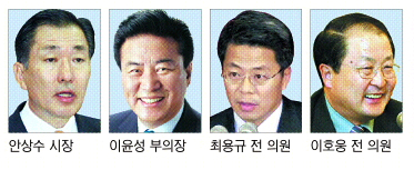 현직 시장의 출마선언으로 여야 후보군은 기류를 살피며 바닥을 훑고 있다. 한나라당에서는 이윤성 국회 부의장이 우선 거론된다. 2006년에도 출마를 노렸지만, 안 시장의 ‘현직 프리미엄’에 무릎을 꿇었다. 중진 의원이 많은 인천지역의 특성상 강자의 출현을 꺼리는 의원간 상호견제로 이번에도 쉽지 않을 것이라는 전망이 많다. 최근 국회 본회의의 미디어법 처리과정에서 원활하게 의사를 진행하지 못한 점도 부담이다.