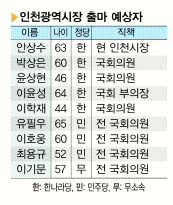인천광역시장 선거에서는 안상수 현 시장이 3선을 노리는 가운데 이에 도전하려는 예비 후보자들의 신경전이 치열하다.