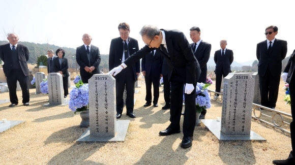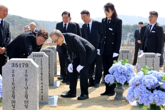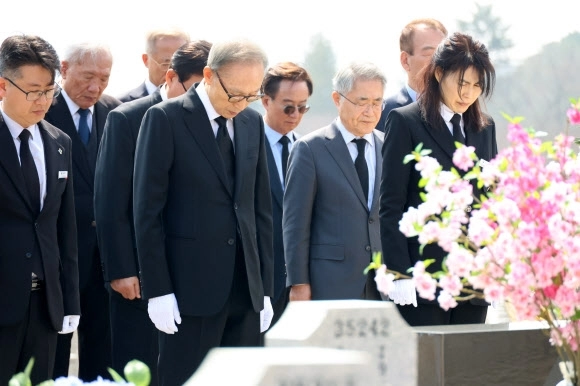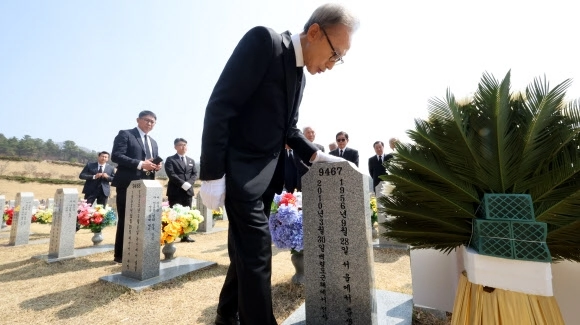 정치 [포토] 이명박 전 대통령, 천안함 묘역 참배 입력 2026-03-26 14:43 수정 2026-03-26 14:43 기사 읽어주기 다시듣기 글씨 크기 조절 글자크기 설정 닫기 글자크기 설정 시 다른 기사의 본문도 동일하게 적용 됩니다. 가 가 가 가 가 프린트 공유하기 공유 닫기 페이스북 네이버블로그 엑스 카카오톡 밴드 https://www.seoul.co.kr/news/politics/2026/03/26/20260326800002 URL 복사 댓글 0 이명박 전 대통령이 26일 국립대전현충원 천안함 46용사 묘역을 찾아 참배 후 묘비를 살펴보고 있다. 온라인뉴스부 Copyright ⓒ 서울신문 All rights reserved. 무단 전재-재배포, AI 학습 및 활용 금지