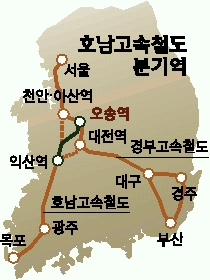 경부와 호남고속철도가 갈리는 분기역으로 오송역이 선정됐다. 호남고속철도분기역평가추진위원회(위원장 이정식 안양대교수)는 30일 오후 국토연구원에서 회의를 열고 대전, 오송, 천안·아산 3개 후보지에 대한 평가를 한 결과 오송이 87.18점을 얻어 1위를 차지했다고 밝혔다.오송은 국가 및 지역발전효과에서 29.40점, 교통성 23.69점, 사업성 9.85점, 건설 용이성 6.60점, 환경성 17.64점으로 전 부문에서 대전(70.19점), 천안·아산(65.94점)을 압도했다.