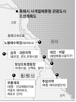 강원도 동해시가 동해골프리조트, 온천, 망상관광지 휴양 레포츠단지조성, 대진 어촌관광지 등을 통해 4계절 체류형 관광도시 만들기에 나섰다.