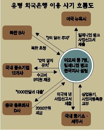 주범 이씨는 2000년 11월 미국 뉴욕에 자본금 5억달러(한화 6000억원 상당)의 ‘밀레니엄 뱅크그룹’을 설립하는 것처럼 서류를 꾸며 신고서를 낸 뒤 이 은행의 한국지사라며 서울 명동에 사무실을 열었다.한글과 영어로 인터넷 홈페이지를 만들어 ‘국제금융·유가증권 인수,부동산 금융 등 종합금융회사로 1500억달러(한화 180조원)의 투자를 유치 중’이라고 선전했다.이들은 미국에 낸 신고서를 근거로 국내에서 상업등기를 했고,사업자등록증까지 받아 사무실에 걸어뒀다.찾아온 기업인에게는 “약간의 수고비만 내면 담보 없이 연 4%의 저리로 외자를 유치해 주겠다.”고 꾀었다.속아넘어간 부동산재개발 회사 대표는 3억달러(한화 3600억원)를 빌리는 조건으로 4억 1700만원을 주었고,약품회사 대표는 1억 5000만원을 냈다.피해자들이 이씨 등에게 주기로 약속한 돈은 모두 127억 7000만원에 달하는데,이 가운데 9억 2000만원은 실제로 전달됐다.