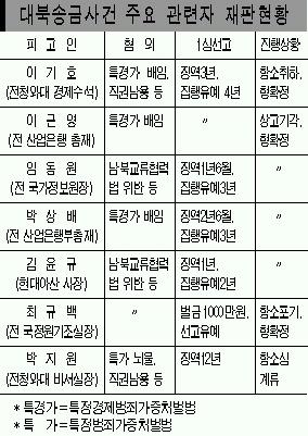 이번 판결로 지난해 4월17일 대북송금 의혹사건에 대한 특별검사의 수사가 시작된 지 1년 만에 박지원 전 문화부장관을 제외한 관련자 6명 전원에 대해 유죄가 확정돼 사법적 판단 절차는 사실상 종료됐다.유죄가 확정되기는 했지만 1심 재판부가 피고인들에 대해 집행유예로 선처한 데다 공소유지를 맡은 특검팀도 1심 판결후 항소를 포기,그들의 소명의식과 남북정상회담의 ‘순기능’은 인정된 셈이다.