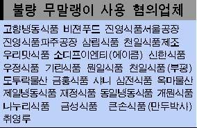 대기업인 CJ계열사를 포함해 ‘쓰레기만두’를 만든 업체들의 명단이 실명으로 전격 공개됐다.식품의약품안전청 심창구 청장은 10일 기자회견을 갖고 관련업체 명단과 회수·폐기대상 만두제품을 발표했다.지난해부터 올해 2월까지 불량 무말랭이로 만두를 만든 것으로 확인된 업체는 모두 12곳이다.