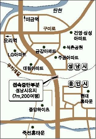 경기도 용인시와 성남시가 연결도로 7m를 놓고 전쟁 수준의 대립현상을 보이고 있다.구미동 중앙하이츠빌과 토끼굴에 이어 세번째 도로분쟁이지만 이번에는 공격(?)과 방어수준이 예사롭지 않다.