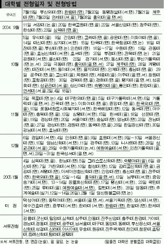 모집인원은 부산대 85명,전남대 85명,건국대 95명,경희대 99명,고려대 108명,단국대 100명,동국대 102명,서강대 35명,성균관대 79명,숙명여대 45명,아주대 40명,연세대 148명,이화여대 70명,중앙대 99명,한국외국어대 68명,한양대 96명,홍익대 77명 등이다.서울대는 아직 결정하지 않았다.