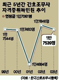 지난해 12월 말 현재 병·의원에서 일하고 있는 간호사는 10만 1943명이며,간호조무사는 8만 8709명이다.간호조무사 자격증을 딴 사람은 모두 30만 4024명이며,해마다 1만 7000여명이 늘어난다.간호사 면허를 가진 사람은 지난해 말 기준 19만 1524명이다.