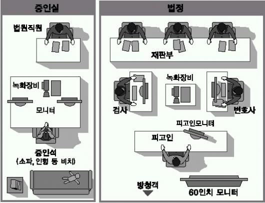 서울중앙지법은 20일 형사합의 26부(부장 김문석)를 성폭력 전담재판부로 지정하고,화상 증언실이 마련된 서울법원청사 가동 418호에서 ‘전자법정’ 시연회를 가졌다.