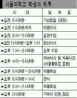 자정이 넘어서도 기숙사 불은 꺼지지 않았다. 야간 점호가 끝난 뒤에도 조기졸업을 하는 2학년 김재현(17)군은 밤늦게까지 수능 시험 공부를 했다.10여명은 룸메이트를 방해하지 않으려고 휴게실로 나와 공부를 했다. 양교석(62) 교장은 “우수한 인재가 의대 등으로만 몰리지 않도록 정부에서 연구인력을 늘리고 이공계 우대 정책을 써야 한다.”고 말했다.