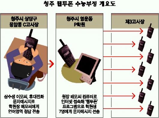 2005학년도 대학수학능력시험에서 인터넷으로 문자메시지를 전송하는 ‘웹투폰(web to phone) 커닝’이 실제로 확인됨에 따라 부정응시자가 더 많이 존재할 가능성이 커졌다.