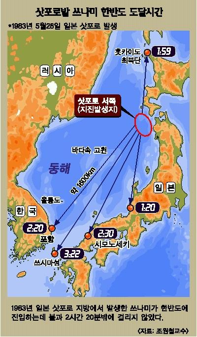 조 교수는 “지난 1964년과 1983년에 일본 니가타와 삿포로 지역에서 발생한 쓰나미로 울릉도 천부항에 5m 이상의 파고가 몰아쳤고 방파제, 주택 등이 손실됐었다.”고 전했다. 최근 동·서남아 상황에 비하면 미미한 손실이지만 우리에게도 언제라도 위험 요소가 작용할 수 있다고 경고했다. 쓰나미가 일본에서 발생할 경우 동해안까지 도착하는 데 걸리는 시간은 2시간 전후. 따라서 쓰나미의 진동을 감지하는 관측장치와 관리시설을 정비하는 것이 절실하다. 조 교수는 “우리나라 관측장치의 경우 울릉도 섬 부근에 있는 기상관측용 시스템이 전부”라면서 “쓰나미는 바다 한가운데를 통해 들어오기 때문에 동해안 심해(深海)에 쓰나미 전용 관측시스템부터 설치해야 한다.”고 지적했다.
