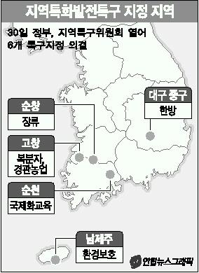 순창군, 고창군, 순천시, 대구 중구, 남제주군 마라도 등이 지역발전에 필요한 각종 규제가 면제되는 지역특화발전특구로 처음 지정됐다.