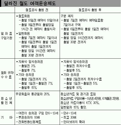 철도청 관계자는 “새로운 여객 운송제도 적용 이후 구입기한에 대한 이용객 민원이 많아졌고 홍보가 부족했던 것이 사실”이라며 “일부 업무에서 정부와의 협의가 마무리되지 않아 정확하게 공지하기 어려운 부분도 있었다.”고 해명했다.