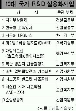 아주대 의대 곽병주 교수팀이 개발한 AAD-2004는 항산화 및 항염증 효과가 뛰어나고 낮은 독성으로 신약개발 가능성이 높은 것으로 평가받고 있다. 또 소형 항공기, 중성자 빔을 이용한 나노공정 반도체 제조장비 등의 실용화사업에도 정부가 나서기로 했다.