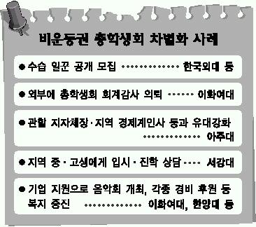 이화여대 총학생회는 오는 9월 교내 클래식 음악회를 연다. 비용 4000만원은 전액 포스코에서 지원 받는다. 예산이 없어 고민하던 총학생회가 포스코에 도움을 요청, 이달 초 ‘OK’를 받아냈다. 한양대 총학생회는 ‘광고효과’를 노린 LG전자의 전폭적인 지원으로 지난해에 이어 올해도 고용량 초소형의 컴퓨터 파일 이동저장장치인 시가 2만 5000원짜리 USB메모리를 1000원 이하에 팔 계획이다.