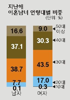 ●이혼연령 10년 전보다 4세가량 많아