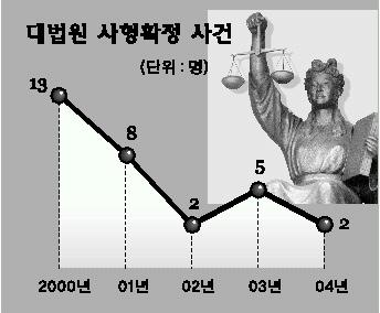 흉악 범죄는 늘고 있지만, 사형 선고는 거꾸로 줄고 있다.1심이나 항소심에서 사형을 선고받더라도 대법원이 파기하는 사례가 많다.1심에서 사형을 선고받은 피고인은 2000년 20명에 이르렀지만,2004년 8명으로 감소했다. 대법원도 2000년에는 13명에게 사형을 선고했지만,2004년 2명으로 줄였다. 하지만 살인죄로 기소된 피고인은 2000년 736명에서 2003년 823명으로 증가했다.