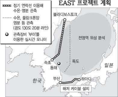 해양 관련 연구자로 구성된 EAST팀은 독도와 울릉도 주변을 비롯해 한반도의 5배에 이르는 동해 전 지역에 해저 케이블 설치, 위성 관측 등의 방법으로 조사하게 된다. 북한 근해는 위성과 무인장비를 이용해 관찰한다.