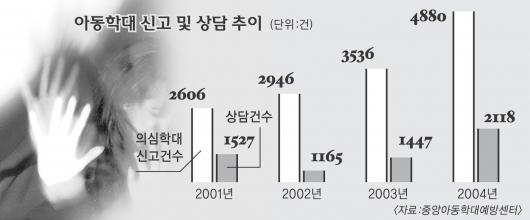 중앙아동학대예방센터에 따르면 베이비시터를 포함한 이웃 사람의 아동학대는 2002년 34건에서 2004년 77건으로 두배 이상으로 늘었다. 아동학대 의심 사례도 같은 기간 2946건에서 4880건으로 무려 65.6% 증가했다. 센터 관계자는 “의사표현을 거의 할 수 없는 영·유아라는 점에서 부모가 모르는 아동학대는 통계치보다 훨씬 많을 것”이라고 말했다.
