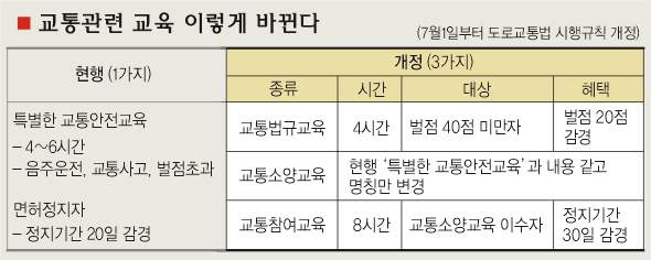 또 면허정지자가 소양교육을 받으면 정지 기간을 20일 줄여주는 기존의 제도는 그대로 유지돼, 교육 이수자 중 희망자에 한해 8시간의 ‘교통참여교육’에 참가하면 30일까지 추가로 면허정지 일수를 줄일 수 있게 됐다.