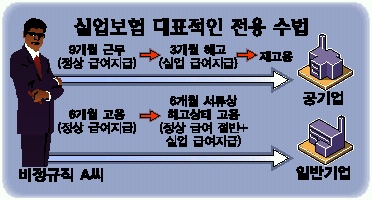 ‘181일’을 근무한 노동자가 정리해고될 경우 최소 3개월에서 8개월간 월급의 50%를 실업급여로 지급하는 고용보험의 규정을 악용하는 것으로 의심되는 일부 사업장들이 20일 처음으로 파악됐다.
