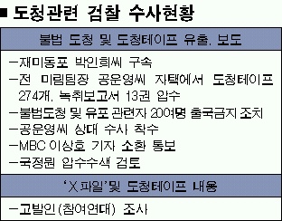 수사 착수 6일밖에 안됐지만 이날 현재 검찰은 핵심 관련자인 공씨와 재미동포 박인회씨의 신병을 확보하는 데 성공했다.X파일을 보도한 MBC 이상호 기자도 곧 조사키로 했다. 검찰은 공소시효 부담에서 벗어날 수 있는 이들의 범죄 행위를 ‘급한 것’으로 분류한 뒤 그 범위를 불법도청 자체로 확대시키고 있는 중이다. 그런 점에서 불법도청 지휘부와 99년 유출테이프 회수 관련자 등에 대한 조사도 임박한 것으로 관측되고 있다.