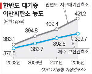 한반도 대기 내 이산화탄소 농도를 분석하고 전망치를 내놓은 것은 처음이다.