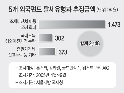 국세청은 29일 관심이 집중됐던 론스타 등 5개 외국계 펀드에 대해 모두 2148억원의 세금을 추징하는 내용의 세무조사 결과를 발표했다. 추징액수는 일반적인 예상을 뛰어넘는다. 국세청은 일부 펀드 관계자들의 경우 ‘사기·기타 부정한 행위’에 의한 조세포탈에 해당되는 것으로 보고 검찰에 고발까지 할 방침이다.
