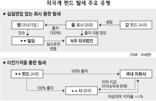 국내에서 생긴 소득을 본국으로 넘겨 탈세한 경우다.A국의 ○○펀드는 한국에서 지급하는 이자에 대한 소득세가 면제되는 B국에 △△△사를 설립했다.○○펀드는 국내 자회사가 필요한 자금을 국내은행에서 싼 이자로 빌릴 수 있었지만, 투자자금을 조기에 회수도 하고 세금부담도 줄이려고 △△△사를 통해 고리로 돈을 빌렸다.